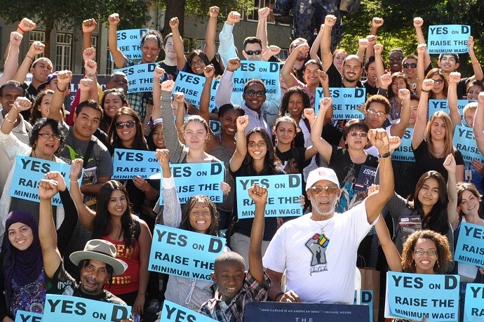 San José raises the floor for Silicon Valley workers. In 2012, a San José State University undergraduate class project turned into a successful ballot initiative to raise the minimum wage in the city to $10/hour, pegged to inflation. Local labor unions, community organizations, and business partners supported the effort, and the campaign helped build support for a statewide $10/hour minimum wage that passed the next year. Currently, the city’s minimum wage is $15.45/hour. San José also has one of the highest living wages in the state, at $24.07/hour (with health benefits), that adjusts annually based on increases in the cost of living in the city, and applies to all businesses that contract with the city. Learn more.